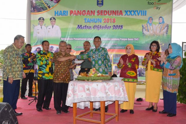 Kota Metro, – Pemerintah Kota Metro melalui Dinas Ketahanan Pangan, Pertanian dan Perikanan Kota Metro mengadakan peringatan Hari pangan sedunia yang ke 38 tahun 2018. Kegiatan dengan tema Optimalisasi Pemanfaatan Lahan Menuju Indonesia Lumbung Pangan Dunia 2045, ini berlangsung di Halaman Dinas setempat, Jumat (05/10/2018).