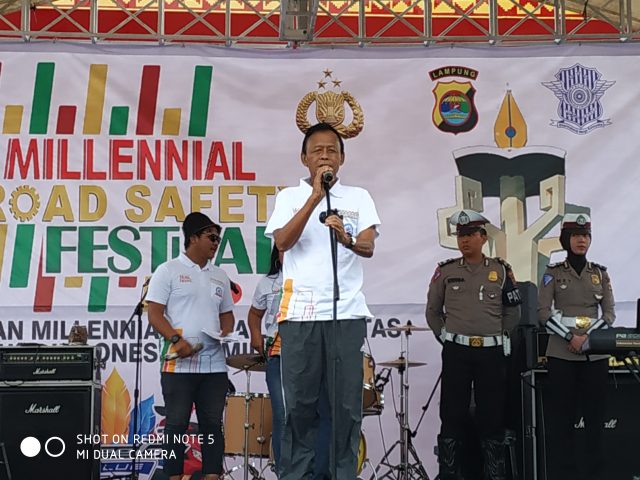 Wali Kota Metro Ikuti Acara Millennia Road Safety yang dimotori oleh Polres Kota Metro di Samber Park Kota Metro, Minggu pagi(17/02/2019).