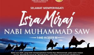 Cyberkatulistiwa.com, MP BandarLampung – Dewan Pimpinan Cabang (DPC) Partai Gerakan Perubahan Indonesia (Partai Garuda) Kota Bandar Lampung mengucapkan Selamat memperingati Hari Isra Mi’raj Nabi Muhammad SAW (1440 H/2019 H) untuk Seluruh masyarakat khususnya Provinsi Lampung.