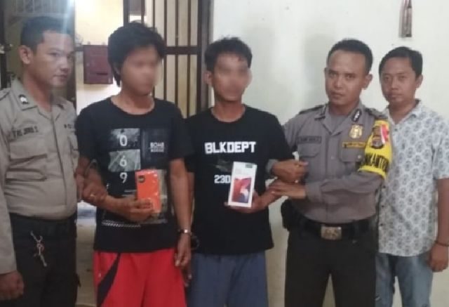 “Berdasarkan hasil penyelidikan, kedua tersangka dapat teridentifikasi dan ditangkap tanpa perlawanan saat berada dirumahnya dengan barang bukti 1 handphone korban yang dikuasai tersangka,” ungkap AKP Ichwan Hadi didampingi Kanit Reskrimnya Bripka Sugianto.