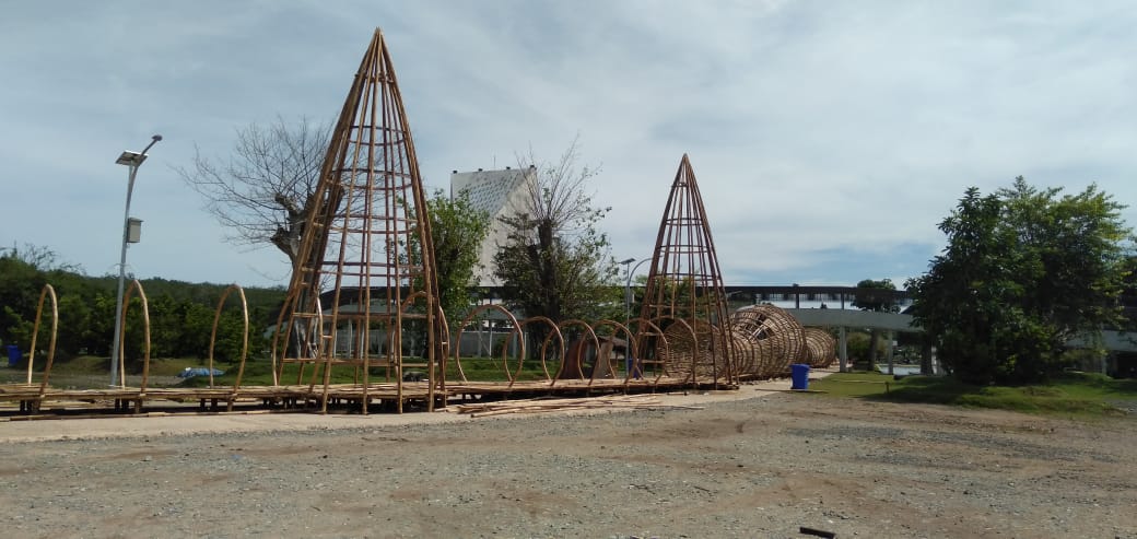 “Awalnya kami liat di medsos mas, begitu sampai disini ya memang unik sekali ini, Baru kali ini memang kami liat bangunan yang seperti ini, Kami gak sabar ini mas nunggu selesainya nanti, katanya ini buat perhelatan MTQ Provinsi Lampung”, tuturnya.