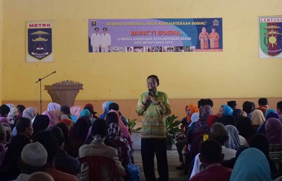 cyberkatulistiwa.com, Metro – Pemerintah kota Metro Melalui Dinas Sosial selenggarakan kegiatan Bhakti Sosial Lembaga Koordinasi Kesejahteraan Sosial (LKKS) Kota Metro, diperuntukkan kepada Fakir Miskin, Penyandang Disabilitas dan lanjut usia terlantar tahun 2019 yang dilaksanakan di Aula Kelurahan Ganjar Agung, Kecamatan Metro Barat Kota Metro, Jumat(03/05/2019).
