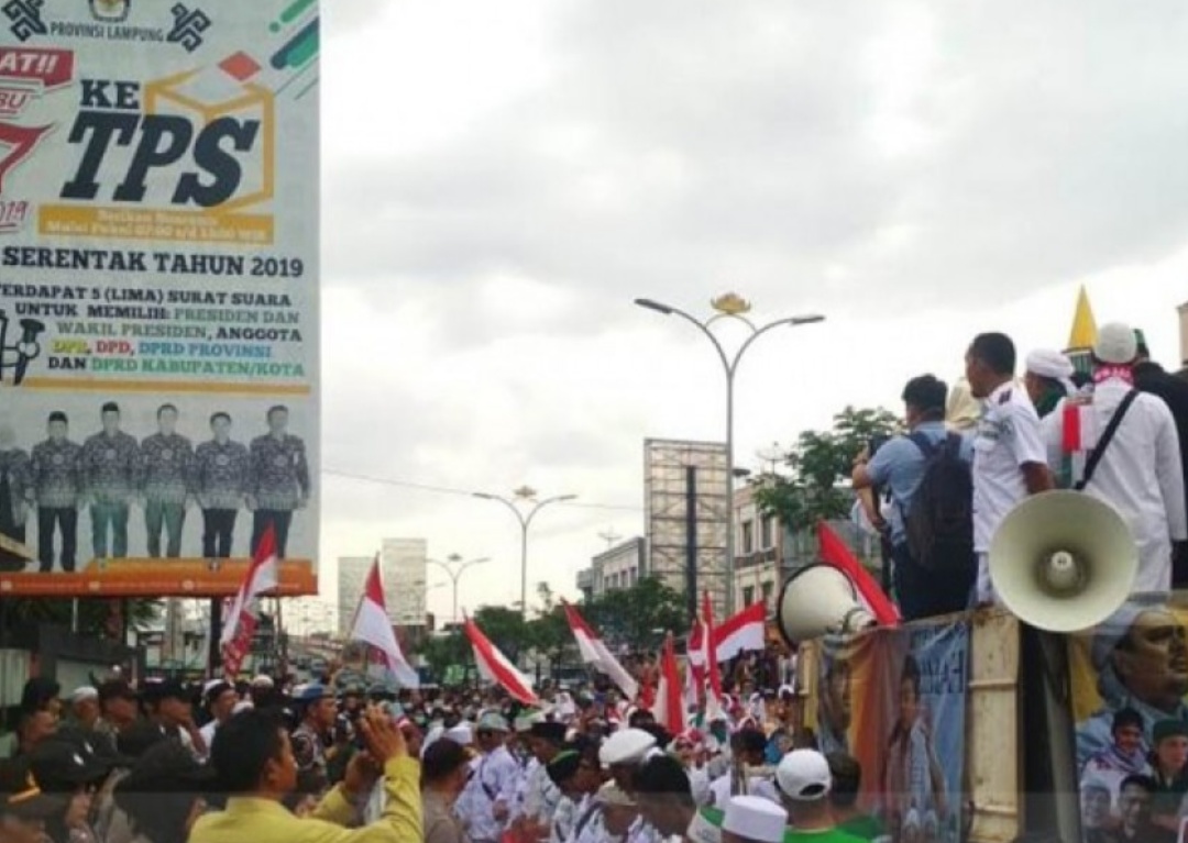 Cyberkatulistiwa.com, Lampung — Relawan Prabowo – Sandi Berdemo kembali di depan Kantor Komisi Pemilihan Umum (KPU) Provinsi Lampung, sejak pukul, 16.00 WIB, Rabu (15/05/2019).