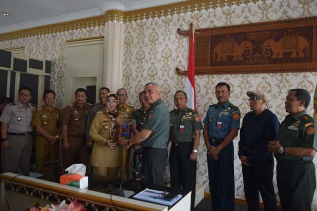 Cyberkatulistiwa.com, Tanggamus – Bupati Tanggamus Dewi Handajani pagi tadi menerima Tim Litbang Kemenhan Republik Indonesia diruang rapat utama Bupati,Selasa (21/05). Dalam kegiatan tersebut hadir juga Dandim 0424 Tanggamus,Sekda,Para Asisten,Kabag Sumda Polres Tanggamus, Kepala Pertanahan serta beberapa pejabat, serta beberapa Kepala OPD di Lingkungan Pemkab Tanggamus.