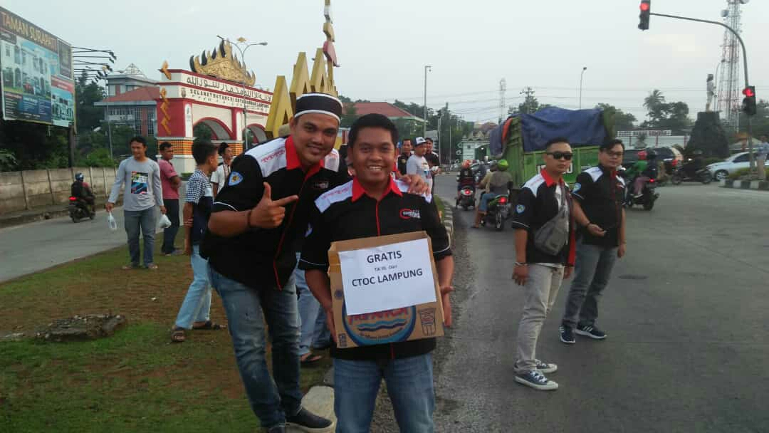 Ratusan takjil gratis tersebut, dibagikan kepengendara yang melintas di sepanjang jalan Bunderan Raden Intan Bandar Lampung, pada sore hari. Komunitas Mobil CTOC Lampung yang terdiri dari mobil Toyota Corolla, melakukan bagi bagi takjil gratis untuk pengendara baik kendaraan roda dua, empat, atau tukang becak.