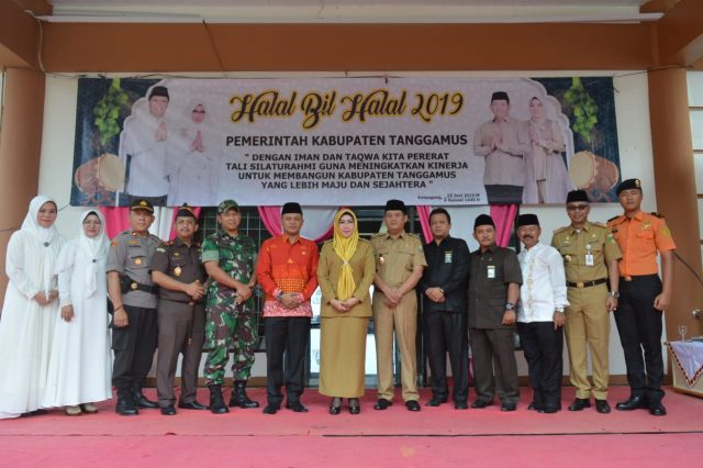 Cyberkatulistiwa.com, Tanggamus — Hari kerja pertama usai cuti bersama dalam rangka memperingati Hari Raya Idul Fitri 1440 Hijriah Tahun 2019. Pemkab Tanggamus menyelenggarakan Halal Bil Halal dilingkungan Pemerintah Kabupaten Tanggamus, bertempat di Halaman Kantor Bupati Tanggamus, Senin (10/6/2019).