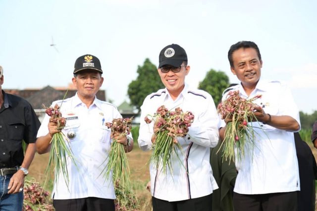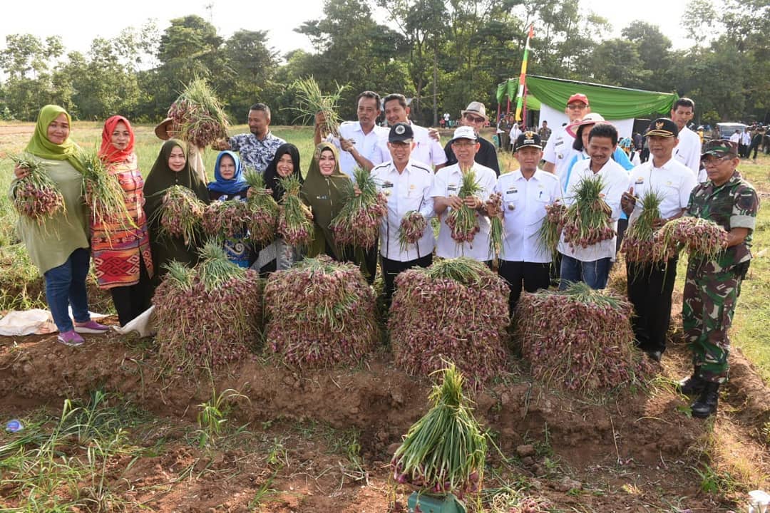 Cyberkatulistiwa.com, Lampung Timur – Panen raya bawang merah yang dilaksanakan di Desa Banjarrejo Kecamatan Batanghari Kabupaten Lampung Timur, Rabu (26/06/2019), Plt. Bupati Zaiful Bokhari meninjau langsung aktivitas panen raya bawang merah yang didampingi oleh Ketua TP. PKK Kabupaten Lampung Timur, Putri Ernawati Zaiful Bokhari, Kepala Dinas Pertanian dan Pangan M. Yusuf, Kepala bagian Humas Setdakab Lampung Timur, Mujianto, Kepala bagian Otonomi Daerah Setdakab Lampung Timur, Syamsul Rijal, dan Camat Batanghari, Mursidi berserta Forkopimcam Kecamatan Batanghari.