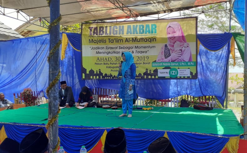 Pengajian sendiri diisi oleh Penceramah muda Ustadzah Nabila Zainuri yang merupakan Finalis Aksi Asia Indosiar Tahun 2018. Dalam ceramahnya Ustadzah Nabila mengajak agar momentum bulan Syawal dijadikan momentum untuk meningkatkan keimanan dan ketaqwaan kepada Allah SWT. (Kominfo)