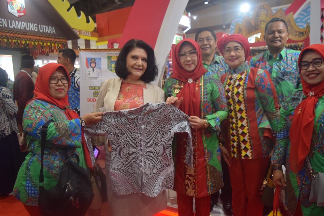 Sementara itu Bupati Dewi Handajani saat dimintai keterangannya, mengatakan pada APKASI Otonomi Expo 2019 ini Pemkab Tanggamus menampilkan berbagai macam potensi dan produk unggulan. “Diantaranya destinasi pariwisata yang ada di Tanggamus, berbagai macam produk UMKM, kerajinan Tapis dan Batik Tanggamus. Selain itu dibidang pertanian, dimana komoditas Pisang Mas telah berhasil di ekspor ke beberapa Negara, dan komoditas Kopi juga,” terangnya.