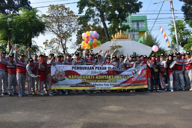 Kegiatan Hari Bhakti Adhyaksa ke-59 tahun 2019 dimulai tanggal 15 sampai dengan 19 Juli 2019, dengan mengangkat tema “Sehat Jasmani Sehat Rohani, untuk Adhyaksa yang Selaras, Berintegritas, Serasi” , yang dipimpin langsung oleh Kepala Kejaksaan Negeri Kota Metro Ivan Jaka M.W., SH., MH dan pengurus ikatan Adhyaksa Dharmakarini (IAD) wilayah Kejari Metro, Para Kasi Kejari Metro, Pejabat Utama (PJU), Pegawai, Staff dan karyawan kejaksaan Negeri Metro.