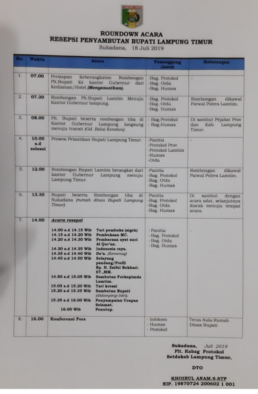Seperti diketahui berdasarkan Surat Keputusan (SK) Mendagri tersebut tertanggal 9 Juli, nomor 131.18-2782 tahun 2019 tentang Pengesahan Pemberhentian Bupati Lampung Timur Provinsi Lampung dan diikuti SK Mendagri lagi nomor 131.18-2783 tahun 2019 tentang Pengesahan Pengangkatan Bupati dan Pengesahan Pemberhentian Wakil Bupati Lampung Timur. Tepat hari ini secara resmi Hi.Zaiful Bukhori akan dilantik menjadi Bupati Lampung Timur.