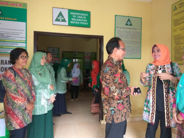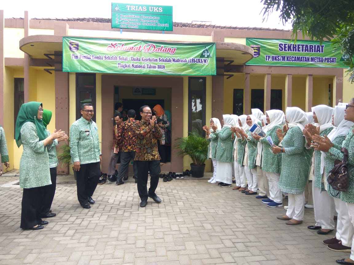 Ketua Tim dan Rombongan penilai UKS/M disambut oleh Tim Pembina UKS/M, Kepala bagian dan staff Kesra Pemkot Metro, Kadis Kesehatan kota Metro, Kadis Pendidikan dan Kebudayaan Kota Metro, Kementerian Agama kota Kota, Camat Metro Pusat dan Puskesmas Metro Pusat.