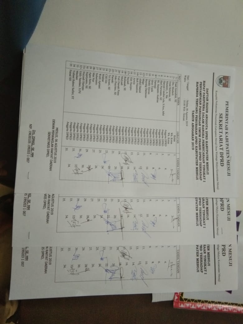 MESUJI, Cyberkatulistiwa.com – Rapat Paripurna tentang Pandangan Umum Fraksi DPRD terhadap Raperda tentang Perubahan APBD Kabupaten Mesuji Tahun anggaran 2019 kembali molor.”Selasa (06/08/2019).
