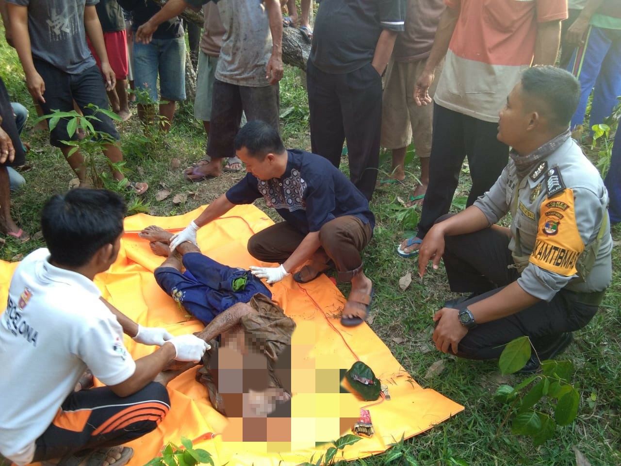 Petugas kami bersama warga dan tim medis yang mendapatkan informasi tentang peristiwa ini langsung berangkat menuju ke TKP untuk melakukan evakuasi, setelah sampai di TKP ternyata korban sudah MD (meninggal dunia).