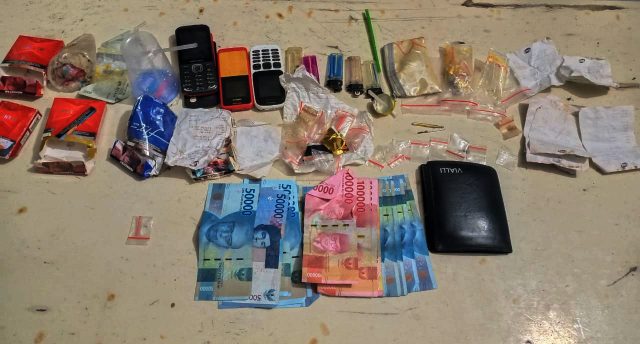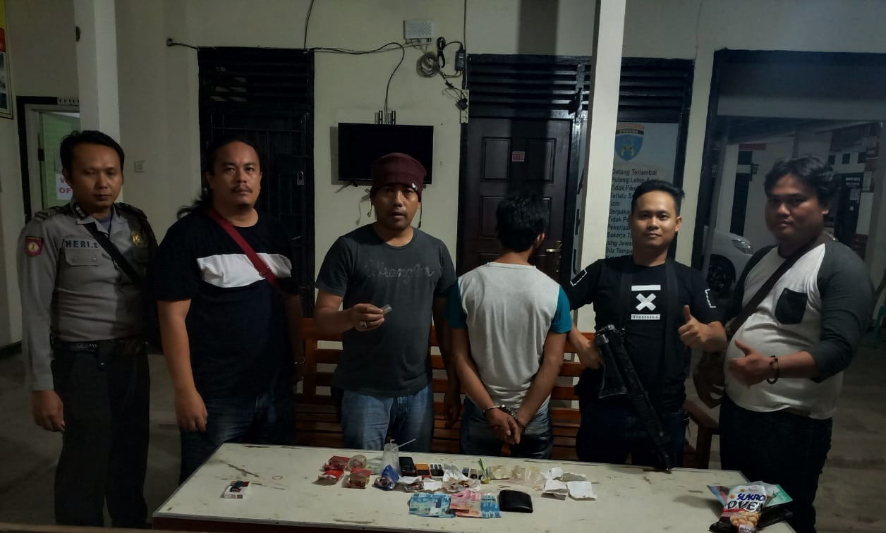 Disana, petugas berhasil menangkap seorang laki-laki serta turut menyita BB (barang bukti) berupa klip kecil yang berisi sabu, alat hisap (bong) yang terbuat dari air mineral, dua buah pipet yang masih terdapat pada bong, puluhan plastik klip kecil sisa sabu yang disimpan di dalam kotak rokok Menara, beberapa plastik klip kecil yang masih baru dan belum terpakai yang juga berada di dalam kotak rokok Menara, lima buah korek api gas, tiga unit HP (handphone), dompet dan uang tunai sebanyak Rp. 1 Juta.