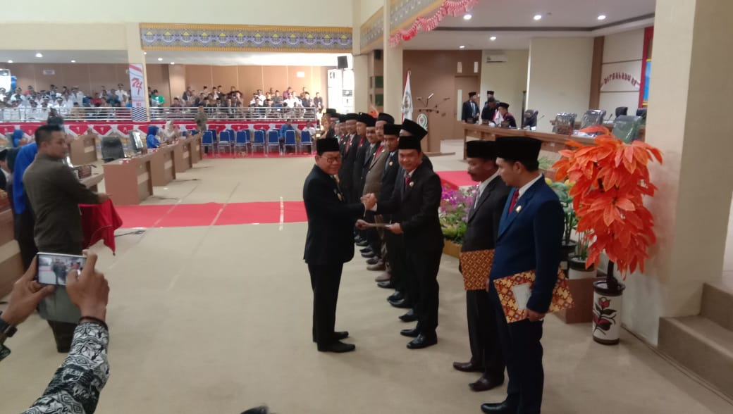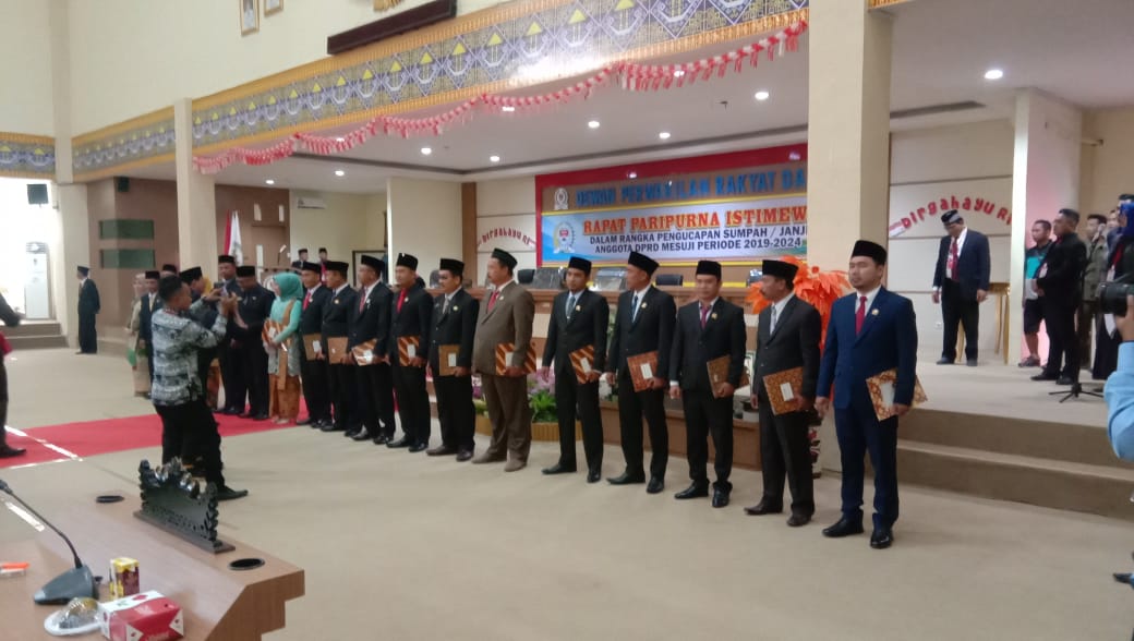 MESUJI, Cyberkatulistiwa.com – Dewan Perwakilan Rakyat Daerah (DPRD) kabupaten Mesuji, menggelar rapat paripurna istimewa dalam rangka pengucapan sumpah janji anggota DPRD terpilih periode tahun 2019-2024.yang berlangsung di lantai dua gedung kantor DPRD Mesuji.”Selasa (20/08/2019).