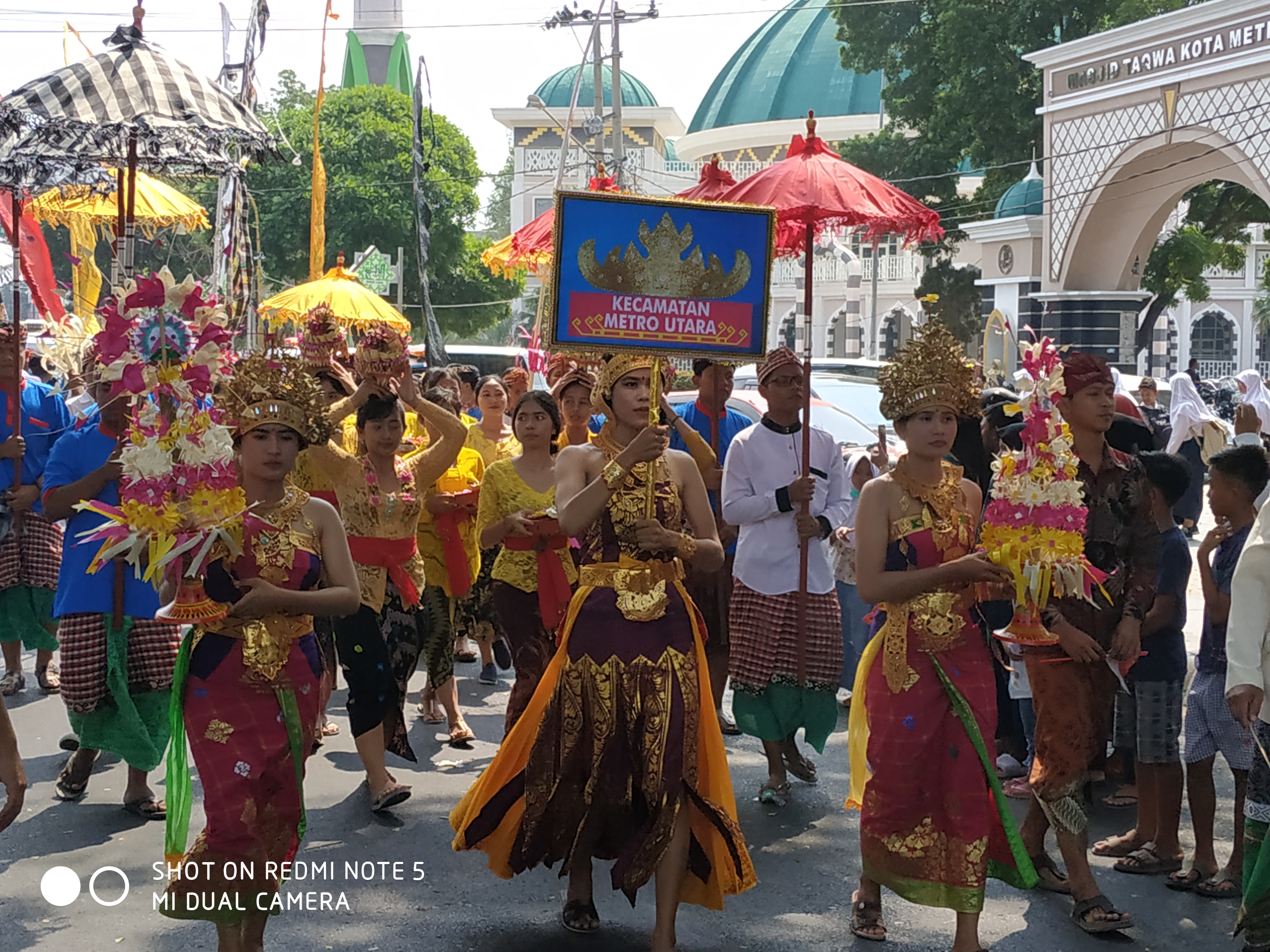 Kecamatan Metro barat mengawali karnaval budaya dengan menampilkan kostum adat Lampung dengan di iringi pencak silat, berikutnya kecamatan Metro Timur bersama Paguyuban Sosial Marga Tionghoa Indonesia menampilkan kostum Tionghoa dan seni budaya barongsai nya sebagai lambang kemakmuran dan kekuasaan serta menceritakan sejarah perjalanan etnis Tionghoa di Indonesia, sedangkan kecamatan Metro selatan menampilkan kostum Adat Minang Sumatera Barat dengan berbagai pernak pernik nya dan seni budaya musik Tambur, dilanjut dengan Kecamatan Metro Utara menampilkan kostum adat Bali berikut dengan ogoh-ogoh yang menjadi ciri khas kebudayaan adat Bali.