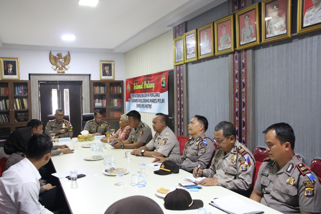 METRO, Cyberkatulistiwa.com – Lampung /Polres Metro, Kepolisian Resort Metro Lampung menerima kunjungan Tim Puslitbang Polri, Senin (02/09/3019).