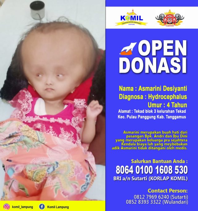 “Dan bagi sahabat lain yang masih ingin berbagi dengan adik Asmarini untuk donasi, kami menunggu dan masih berharap uluran tangan para dermawan, mengingat proses pengobatan adik Asmarini yang memakan waktu lama dan biaya yang cukup lumayan,”ungkapnya.