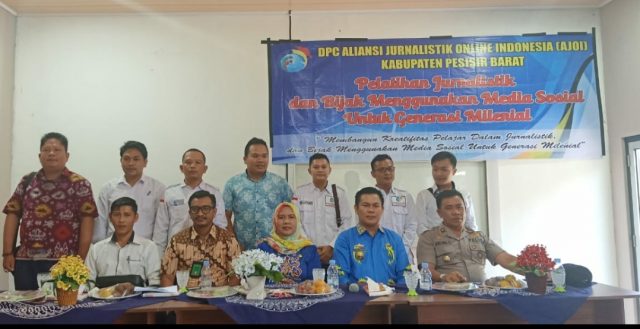 Pesisir Barat, Cyberkatulistiwa.com – Perdana, Jajaran Pengurus Aliansi Jurnalistik Online Indonesia (AJOI) DPC Kabupaten Pesisir Barat, Provinsi Lampung menggelar kegiatan Pelatihan Jurnalistik Tingkat Pelajar SMA/SMK Se-Kabupaten setempat sekaligus sosialisasi mengenai penggunaan sosial media (Sosmed) bagi generasi milenial.