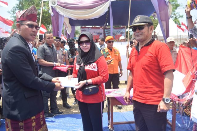 Tanggamus Cyberkatulistiwa.com – Bupati Tanggamus Hj. Dewi Handajani, menghadiri Puncak Kegiatan Festival Untuk Negeri (FUN), Pengibaran 10.000 Bendera Merah Putih serta Parade Kebangsaan di Pantai Teluk Kiluan, Pekon Kiluan Negeri Kecamatan Kelumbayn, Minggu (05-06/10/19).