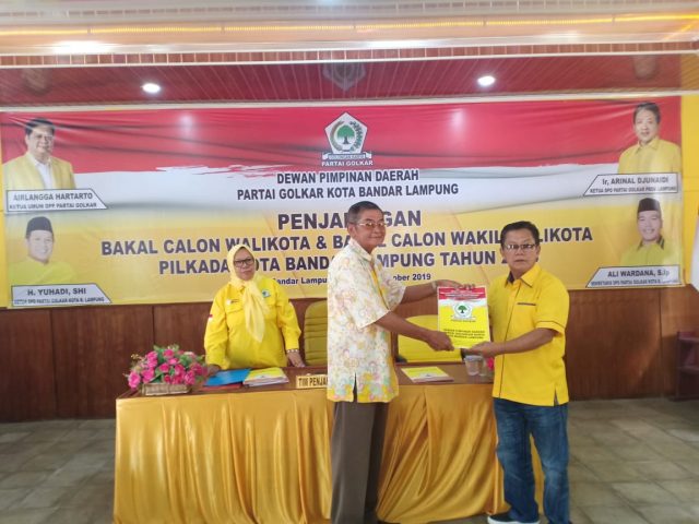 Bandarlampung, Cyberkatulistiwa.com – Hari pertama masa penjaringan bakal calon walikota dan bakal calon wakil walikota Bandarlampung, dua bakal calon (Balon) walikota mendaftar ke Panitia Penjaringan DPD II Partai Golkar Bandarlampung, Senin (7/10/2019).