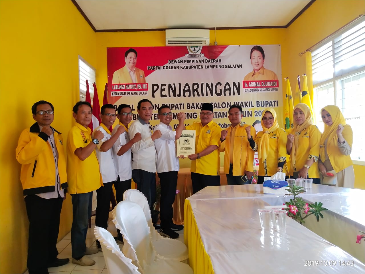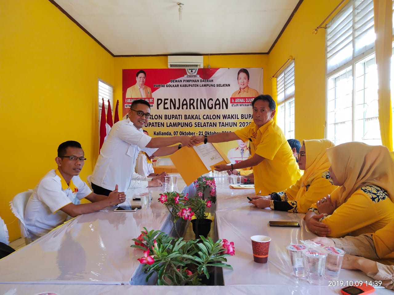 Saat mengambil berkas Calon Kepala Daerah di DPD Partai Keadilan Sejahtera (PKS) Kabupaten Lampung Selatan, H.Benny HN Mansyur diterima langsung oleh Ketua Tim Penjaringan H.Andi Apriyanto,A.Md dan Sekretaris Tri Julian Muhar, S.Si, serta Duta Pilkada PKS Dede Suhendar,S.Pd, dan Imam Rohadi,S.Hut. Kemudian di Sekretariat DPD Partai Golkar Kabupaten Selatan, H.Benny HN Mansyur diterima langsung oleh Ketua Tim Penjaringan H.M.Sahroni,ME dan Sekretaris Jayusman didampingi Ramli Yaqub,SH.,MM, Ridwan Efendi, SH, Suliana,SH, Rita Afriyanti, dan Dr.Hj.S.Endang Prasetyowati,SH.,MM.