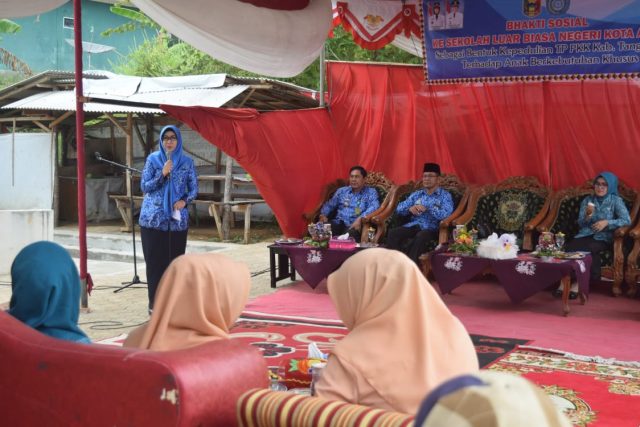 Kepala Sekolah SLBN Tanggamus Dra. Sumarni dalam sambutannya mengucapkan terima kasih kepada Bupati Tanggamus, TP PKK dan DWP Tanggamus atas diselenggarakan kegiatan tersebut.