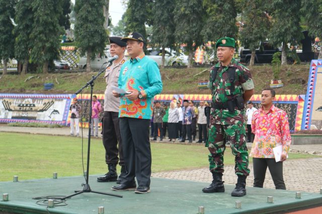 Bertindak sebagai Pembina Apel, Wakil Bupati Hi. AM. Syafi’i, didampingi Kapolres Tanggamus AKBP Hesmu Baroto dan Dandim 0424 Letkol. Arh. Anang Hasto Utomo.