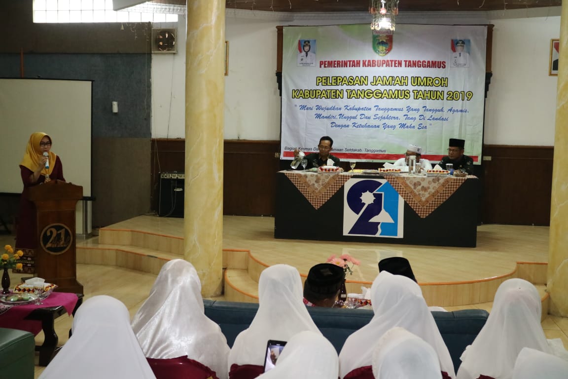 Bupati Tanggamus Hj. Dewi Handajani,dalam sambutannya mengatakan selamat menunaikan Ibadah Umroh Tahun 1441 H/2019 M. Semoga dapat menjalankan ibadah umroh ditanah suci dengan baik dan lancar,dan kembali pulang ke tanah air serta kampung halaman tercinta diTanggamus dalam keadaan sehat wal’afiat.