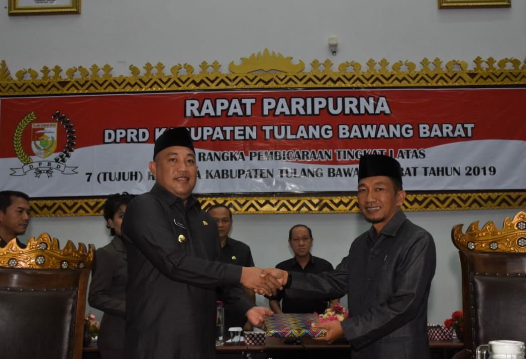 Dalam Paripurna tersebut dihadiri oleh, Bupati Tulang Bawang Barat (Tubaba), Ketua DPRD, Anggota DPRD, para KA.OPD, para Tokoh Adat, Agama, Masyarakat dan Pemuda, Selasa (19/11/2019).