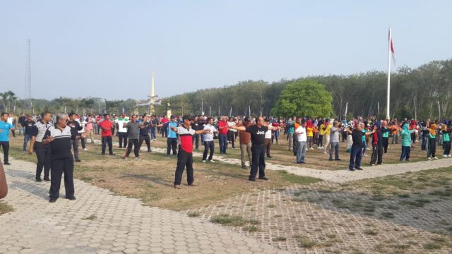 “Selain untuk memperingati HUT Korpri, senam yang kami gelar ini untuk meningkatkan tali silaturahmi antar pegawai di lingkup Pemkab Tulang Bawang Barat”ujar Sekda.