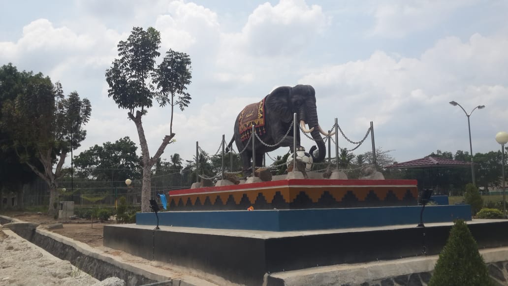 Romlan, “taman di lengkapi berbagai Fasilitas seperti ayunan prosotan gazebo dan ada icon taman sekaligus Tiyuh.yaitu patung gajah,”ungkap Romlan.