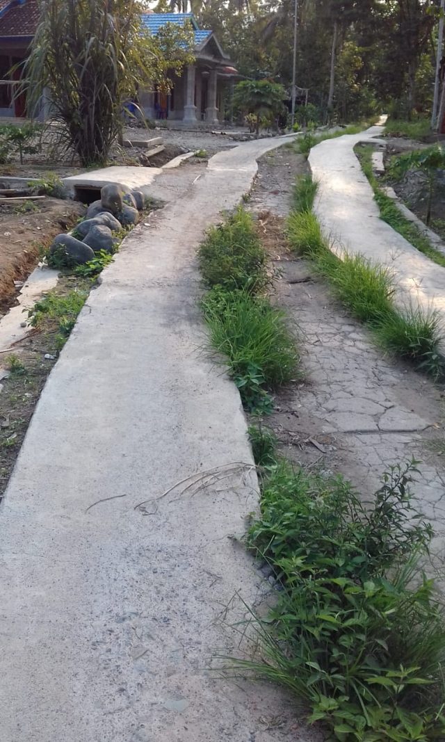 Pembangunan tersebut pada gambar yang di ambil oleh Media, tampak bahwa lebar jalan kurang lebih 3 Meter di bagi menjadi 2, 1 jalan selebar 1 Meter menjadi dua bagian dan di tengah kosong, panjang sekitar 150 meter jalan menuju sungai.