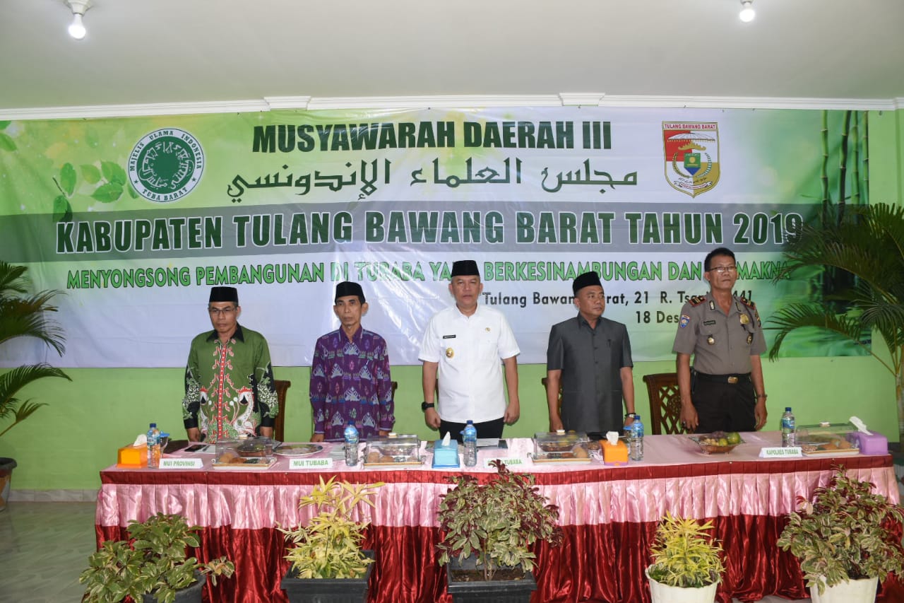 Dan sesuai dengan tema Musda MUI III Kabupaten Tulang Bawang Barat tahun 2019 menyongsong pembangunan di Tubaba yang berkesinambungan dan bermakna tutupnya.(Iwan).