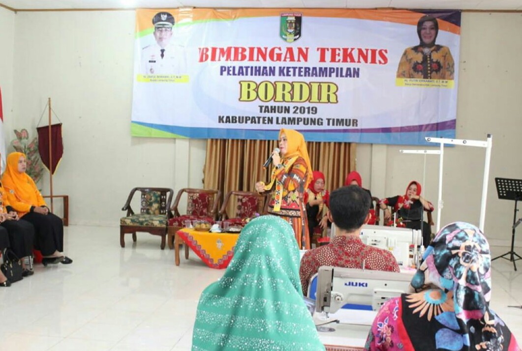 “Atas Nama pribadi dan selaku Ketua Dekranasda Kabupaten Lampung Timur saya menyambut baik dan mengapresiasi kegiatan bimtek dan pelatihan bordir sebagai ajang menambah pengetahuan dan keterampilan sehingga mendorong terciptanya kesempatan kerja yang lebih produktif serta dapat meningkatkan ekonomi keluarga dan kemandirian bagi kaum perempuan pada umumnya”.