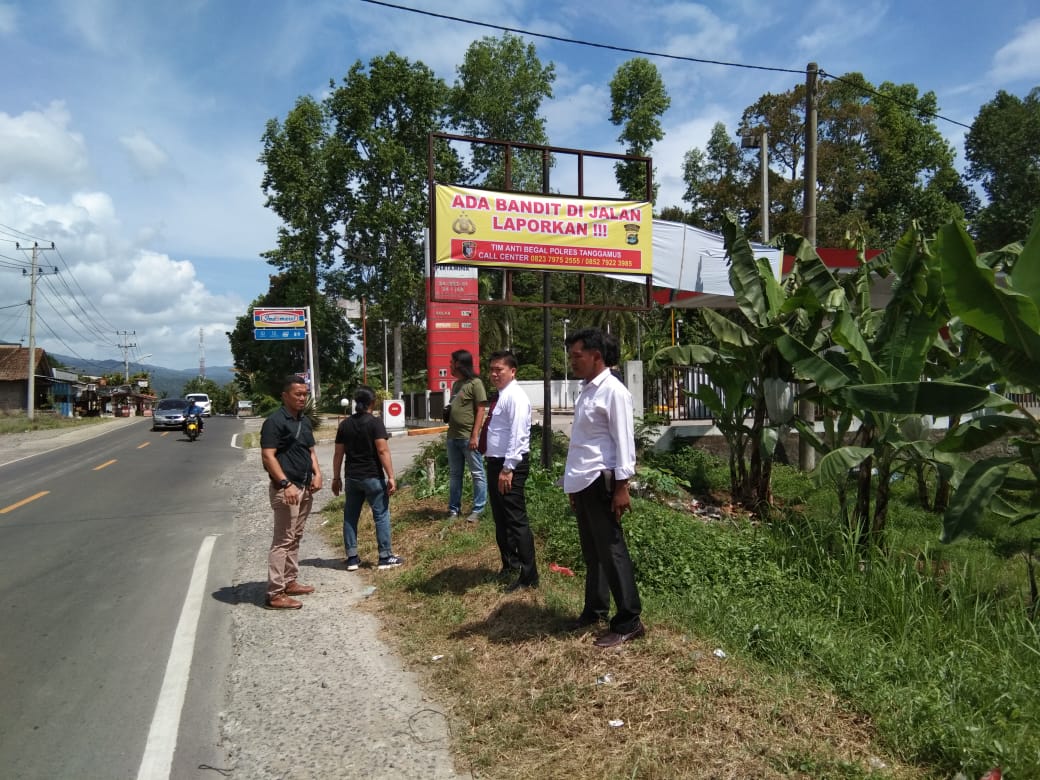 Kemudian juga ditemukan, banner bertuliskan, “Apabila Mengalami atau Melihat, Terjadinya Tindak Pidana Agar Melaporkan ke Call Center Tim Anti Bandit (Tekab 308) Polres Tanggamus No. Hp. 082379752555, 085279223985,” itu di Jalinbar Kecamatan Talang Padang.