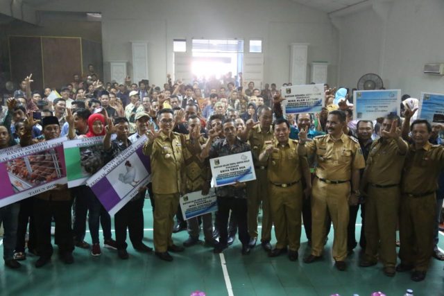 Lampung Timur, Cyberkatulistiwa.com – Bupati Lampung Timur, Hi. Zaiful Bokhari Menyerahkan Bantuan Hibah Ternak dalam Kegiatan Pendistribusian Bibit Ternak Kepada Masyarakat, Perbibitan, Perawatan dari Dinas Perikanan dan Kelautan Kabupaten Lampung Timur di Aula Hotel Yestoya Kecamatan Way Jepara, Senin (30/12/2019).