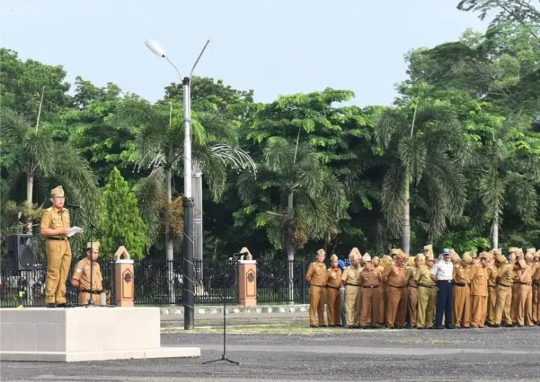 LAMTIM, Cyberkatulistiwa.com – Bupati Lampung Timur, Zaiful Bokhari pimpin apel mingguan perdana di tahun 2020 yang berlangsung di lapangan depan Kantor Bupati Lampung Timur. Senin (06/01/2020).