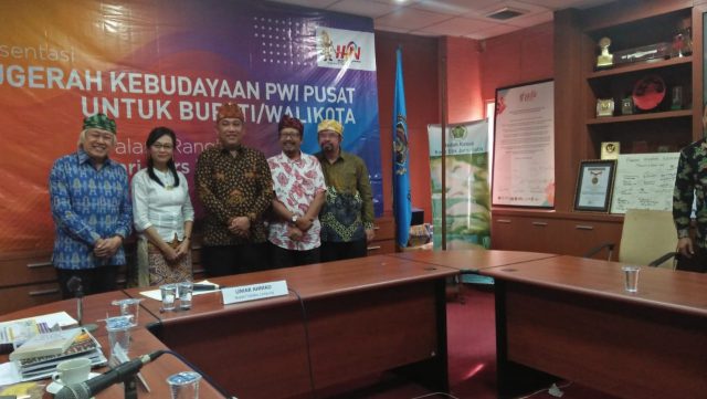 Tubaba, Cyberkatulistiwa.com – Bupati Tulang Bawang Barat (Tubaba) Umar Ahmad mempresentasikan konsep-konsep pembangunan berbasis kebudayaan di hadapan dewan juri Anugerah Kebudayaan PWI Pusat, di Gedung Dewan Pers, Jakarta, Kamis (09/01/2020) sore.