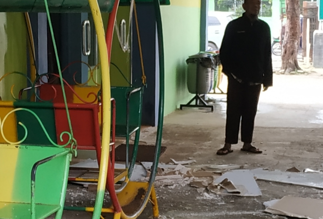 METRO, Cyberkatulistiw.com – Puskesmas Iringmulyo yang beralamat di Jalan Ki Hajar Dewantara Kelurahan Iringmulyo Kota Metro mengalami kerusakan dengan runtuhnya atap yang belum Genab 1 Tahun di bangun dan sangat membahayakan keselamatan pasien yang sedang berobat dan petugas kesehatan di Puskesmas Iringmulyo itu sendiri, Selasa (14/01/2020).