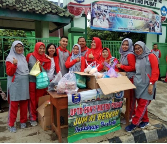 Suyeti juga menyampaikan, “Jumat berbagi UPTD SD Negeri 1 Metro Pusat sebanyak 400 nasi bungkus yang dibagikan kepada warga sekitar sekolah ,pejalan kaki dan pondok pesantren Tahfidz Al Muttaqin Metro Barat,” ucap nya.(bibie).