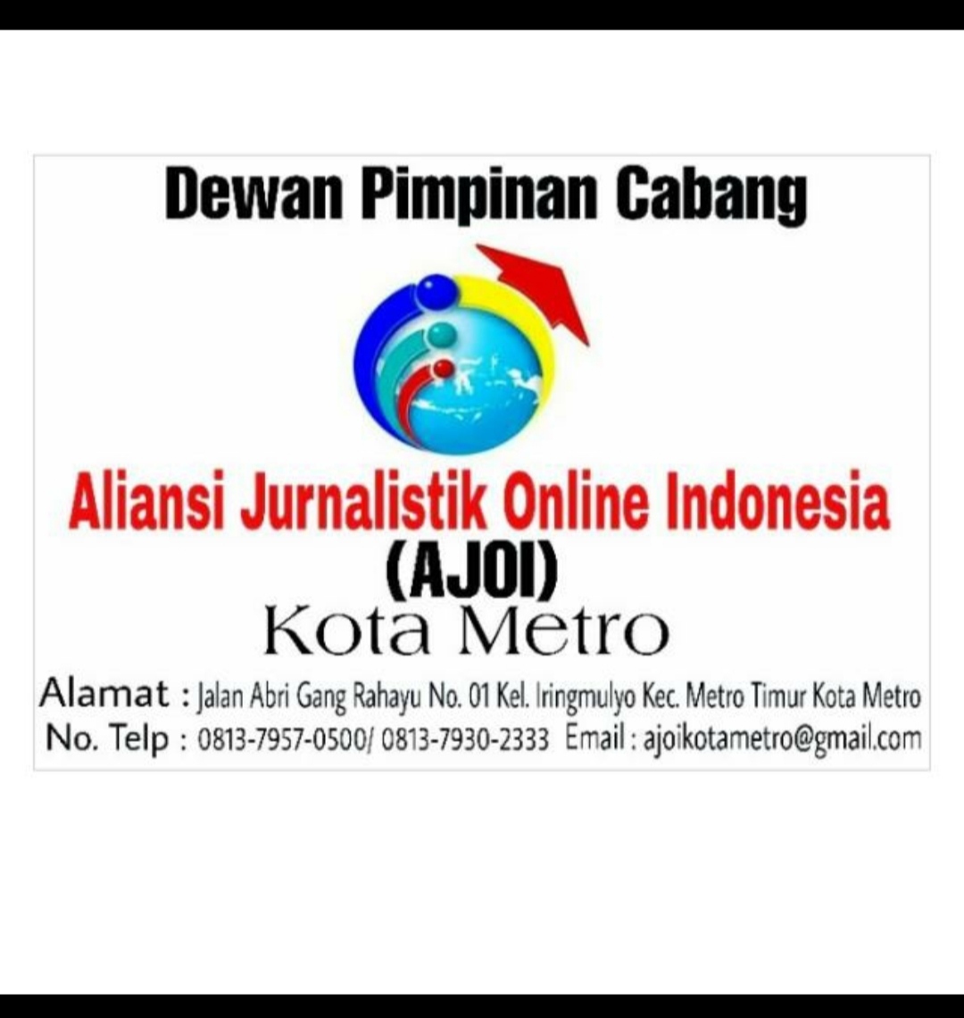 Kota Metro, Cyberkatulistiwa.com – Aliansi Jurnalistik Online Indonesia (AJOI) Provinsi Lampung, terus lebarkan sayap. Setelah sebelumnya terbentuk Empat kepengurusan DPC (Kabupaten Lampung Utara, Way Kanan, Pesisir Barat dan Tulang Bawang Barat), kini kepengurusan DPC Kota Metro siap berkibar menjalankan program kerja AJO Indonesia.