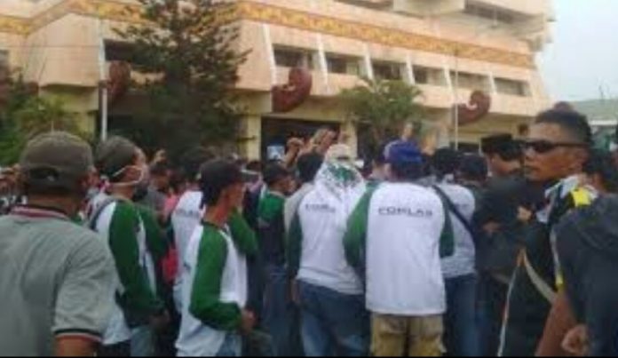 Bandar Lampung, Cyberkatulistiwa.com – Ketua Komisi II DPRD Provinsi Lampung Wahrul Fauzi Silalahi menemui ratusan massa yang tergabung dalam Gerakan Masyarakat Peduli Anak Krakatau di depan kantor Gubernur Lampung, Senin (10/2/2020).