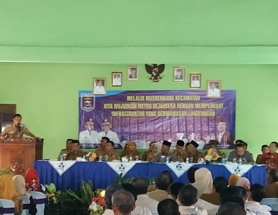 Kegiatan Musrenbang Kecamatan Metro Timur Kota Metro juga mengambil tema “Melalui Musrenbang Kecamatan Kita Wujudkan Metro Sejahtera Dengan Memperkuat Insfrastruktur Yang Berwawasan Lingkungan”.