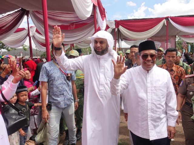 Tabligh akbar di Lapangan Kalirejo bersama Syekh Muhammad Jaber dan Bupati Loekman Djoyosoemarto ini merupakan titik kedua setelah sebelum nya diadakan juga acara serupa di Lapangan Tanggul Angin Kecamatan Punggur pada 16 Februari 2020. (Adv/tur/Kominfo).