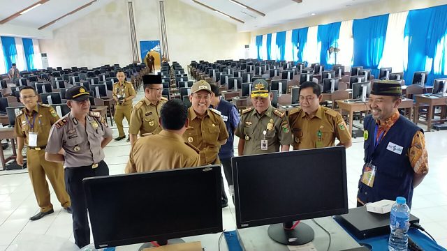 Pringsewu, Cyberkatulistiwa.com – Wakil Bupati Tanggamus Hi. AM. Syafii, meninjau Pelaksanaan Tes Calon Pegawai Negeri Sipil (CPNS) Tahun Anggaran 2019 untuk Kabupaten Tanggamus dihari ke tiga pelaksanaan tes, di SMK Yadika Pegelaran Kabupaten Pringsewu, Selasa (18/02/2020).