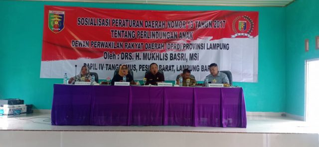 Tanggamus, Cyberkatulistiwa.com – Drs. Mukhlis Basri, Anggota DPRD Lampung Dapil IV Tanggamus, Pesisir Barat,Lampung Barat , menggelar sosialisasi Peraturan Daerah (Perda) nomor 13 tahun 2017 tentang perlindungan anak.
