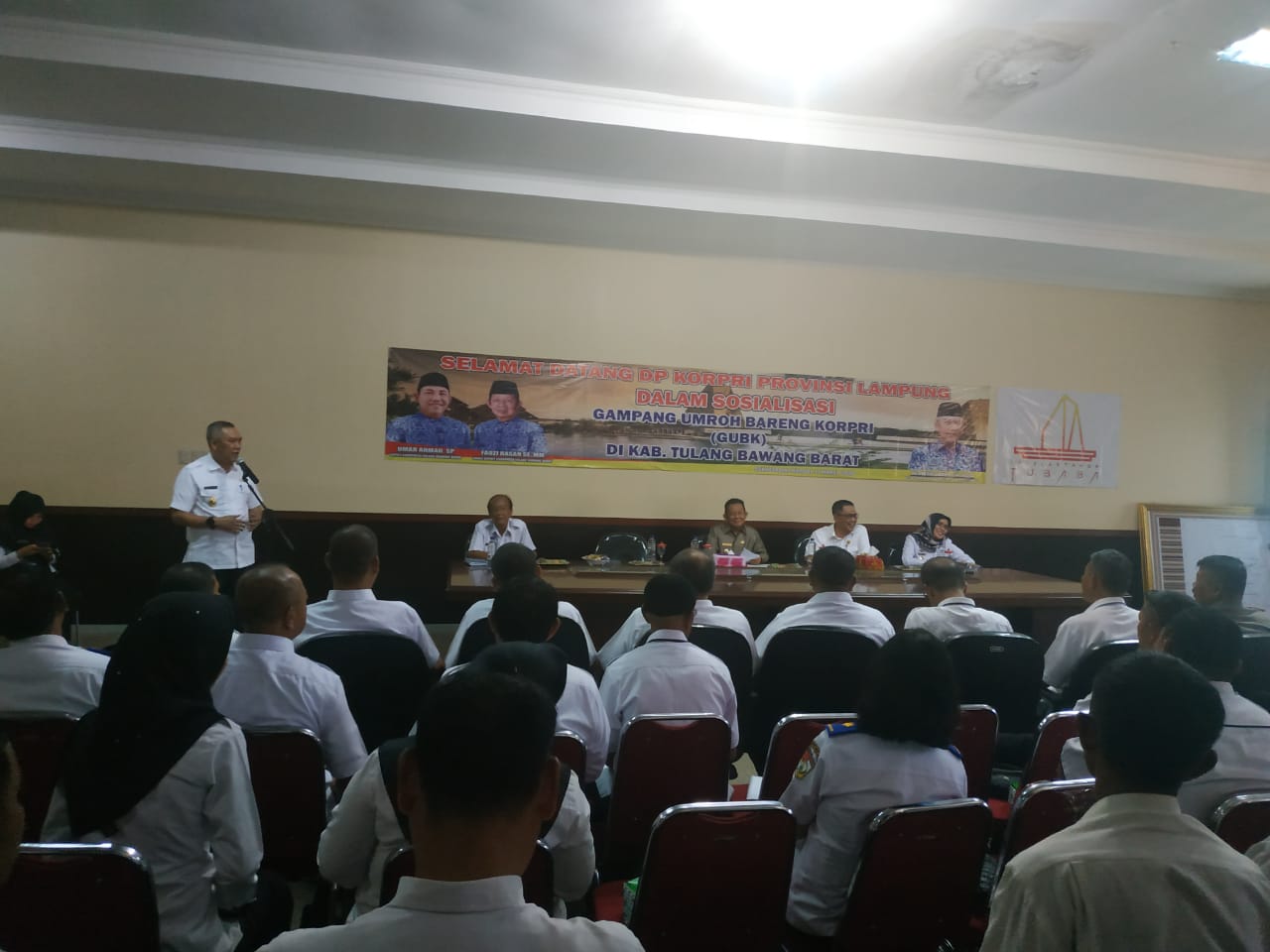 Tubaba, Cyberkatulistiwa.com – Wakil Bupati Tulang Bawang Barat (Tubaba) Fauzi Hasan, SE., MM membuka sekaligus memberi arahan pada acara Sosialisasi Gampang Umroh Bareng Korpri (GUBK) yang berlangsung di Ruang Rapat Wakil Bupati setempat. Panaragan, rabu (11/03/2020).