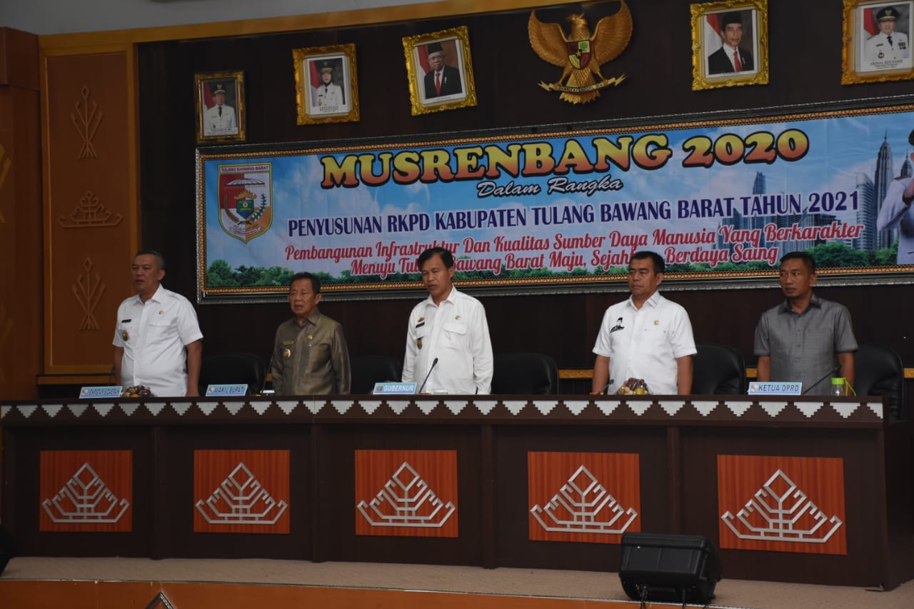 Di dalam sambutan Wakil Bupati Fauzi Hasan mengatakan Musrenbang 2020 ini bisa menjadi proses yang berjenjang pembangunan infrastruktur dan kwalitas sumber daya manusia yang berkarakter menuju Tulang Bawang Barat yang maju sejahtera dan berdaya saing.